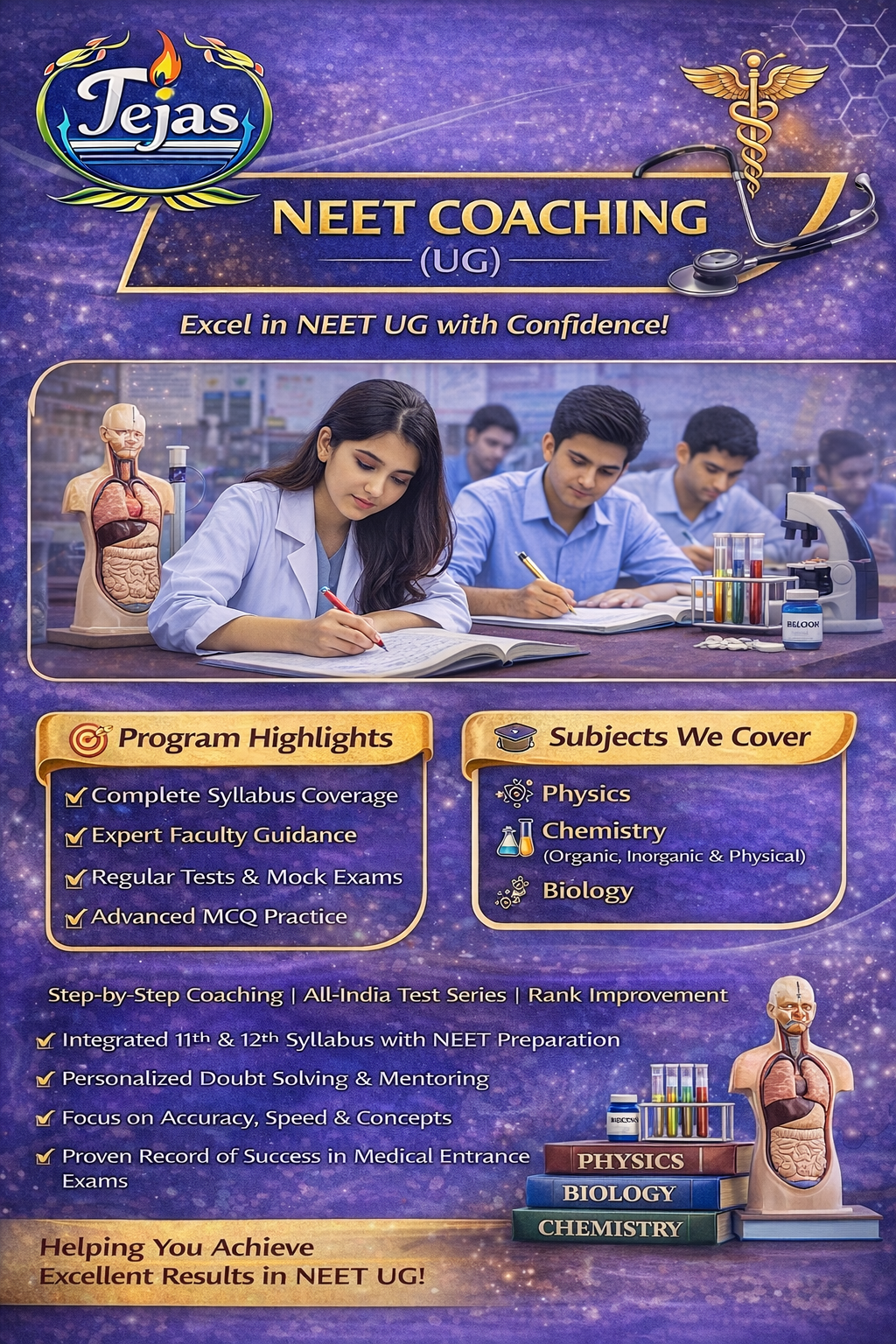 At Tejas Group of Institute, our NEET Coaching Program is designed to help students achieve success in the NEET (UG) medical entrance examination through strong conceptual learning, systematic practice, and continuous performance evaluation.